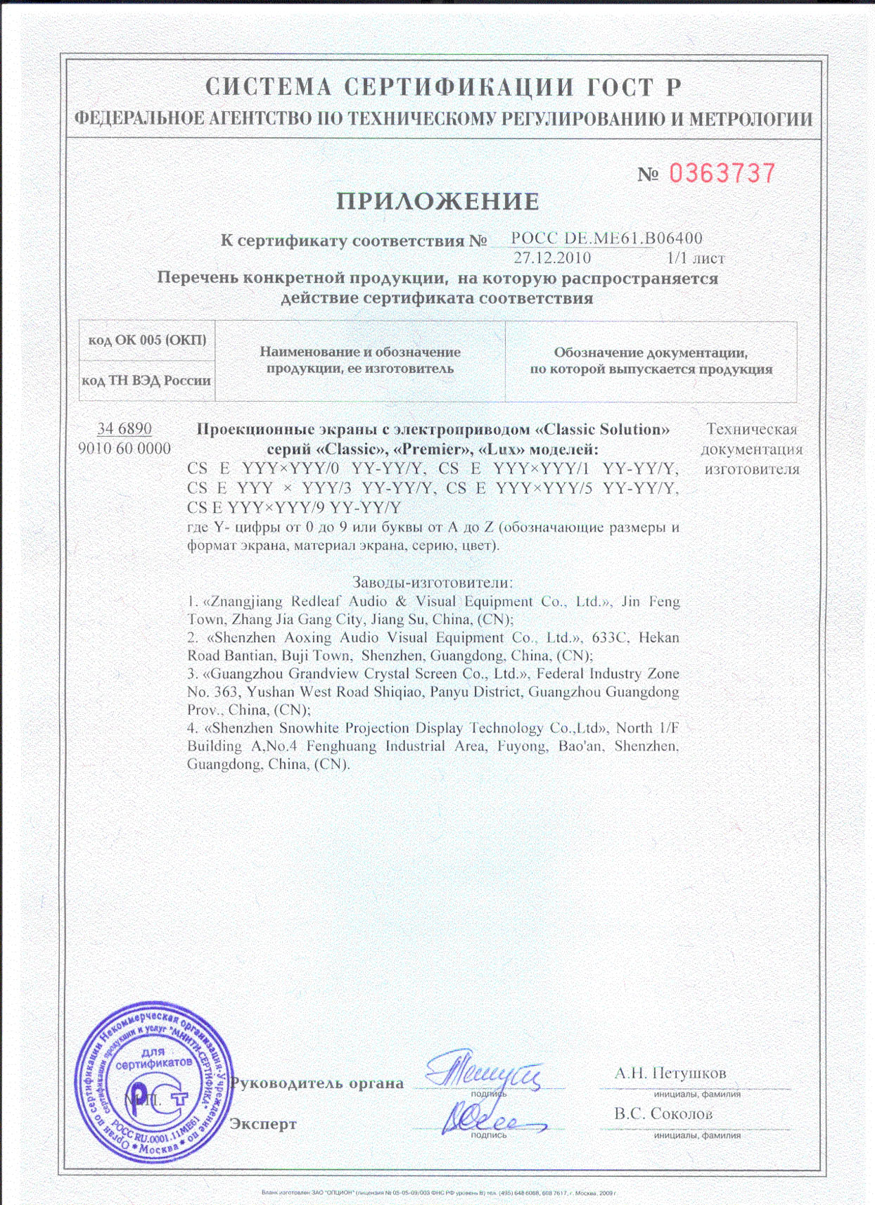 Приложение к сертификату